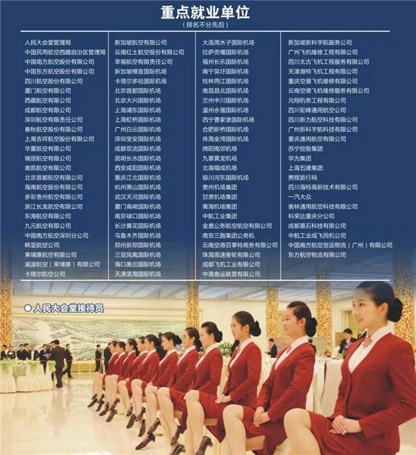?学院所属的泛美教育集团与国内外数百家民航单位建立了紧密合作关系,为学生开辟了广阔的就业渠道,毕业生就业于国际国内航空公司和民航机场,涵盖飞行、乘务、空保、空管、机务维修、安检、贵宾服务、值机等各类民航岗位。?