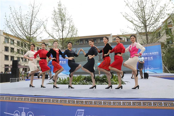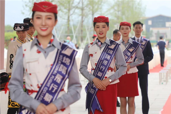 在绵阳飞行职业学院揭牌仪式现场,鼓乐阵阵、喜气洋洋。