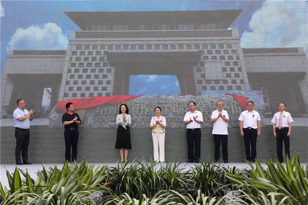 ▲院长吴土星携手与会嘉宾代表掀起红绸