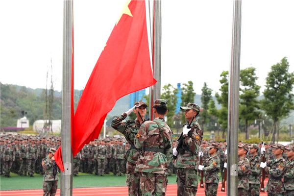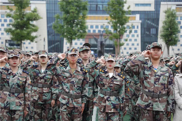 ????全体军训新生宣誓:“传承善与美德,传递爱与快乐;认真参加军训,刻苦磨砺意志;完善自我,创造生活;努力成为标准的军人,高度职业化的民航员工、现代的绅士淑女?!?br>