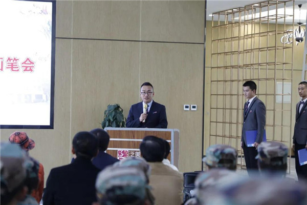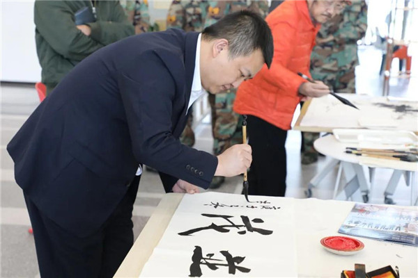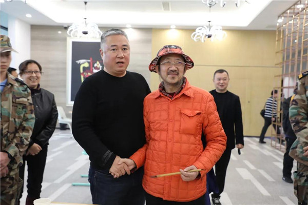 ?? 笔会开始前,绵飞院梁国辉副院长热情致辞,欢迎艺术家莅临现场。绵飞院党委书记资建民、李选华副院长、绵飞校鲜继培副校长、单招霞副校长等参加了书画笔会。