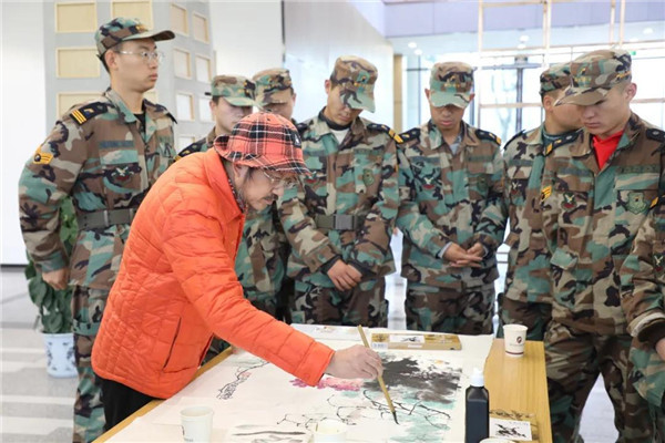 ? 铁钩银画,笔走龙蛇;胸有沟壑,浓淡相宜。四位书画艺术家现场创作,笔触生情,酣畅淋漓。在凝神创作间隙,艺术家们还和师生热情互动,讲笔法解意境。