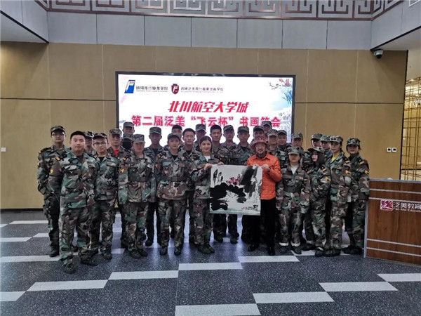 ????为落实高雅艺术进校园,提高师生艺术修养,弘扬泛美文化,传承善与美德,传递爱与快乐,11月18日,第二届泛美“飞云杯”书画笔会在绵阳飞行职业学院行政楼一楼大厅精彩举行。艺术家们现场创作,以书画为友,笔墨为媒,给师生们带来一场直观鲜活的艺术大讲堂。