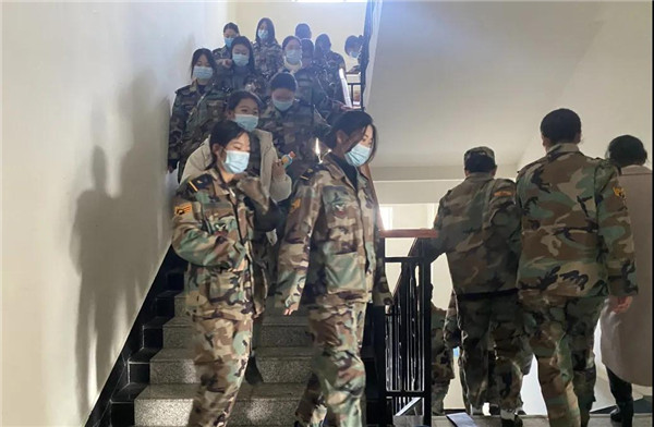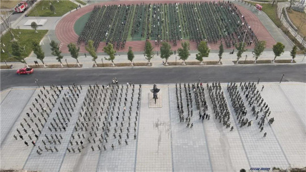 ????学生经过老师的指引,沿着安全出口离开宿舍,紧急集合到学校运动场、华夏广场的开阔安全区域,并集合清点人数,各中队报学校安保处。同时,安保人员和教官在做好防护的情况下组成搜查队,两人1层楼,迅速排查宿舍内是否有学生滞留。