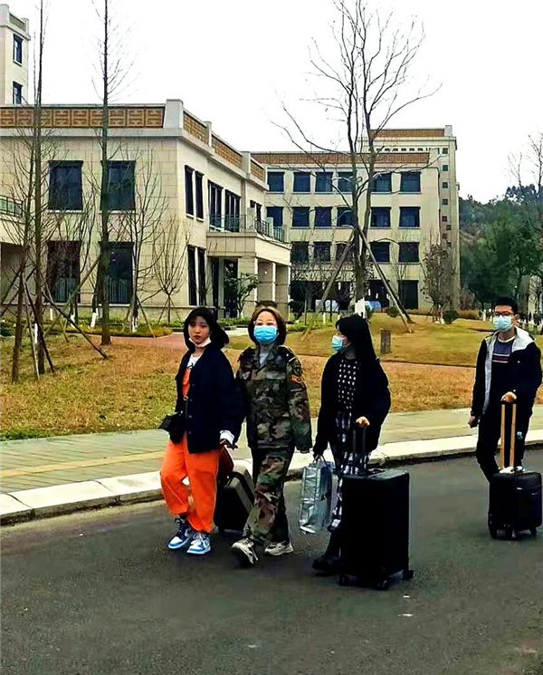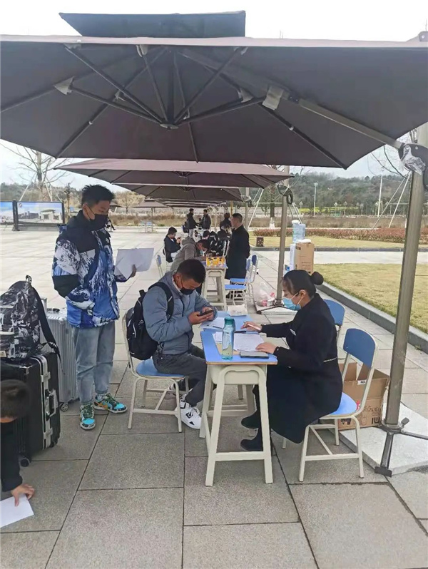 ??从正校门到华夏广场、酉山书院、龙堡,学校老师们早早布置好返校报到通道,为返校学生安全、有序的进入校园筑起守护之墙。