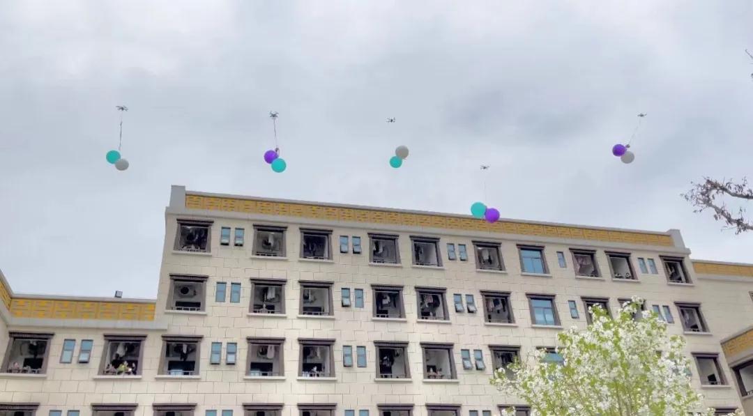 ???浪漫无人机,“飞”常幸运。?美丽女生节,浪漫新花样。绵飞无人机专业的男生们用7架无人机牵起气球为女生们送祝福,并大声表白祝:“绵飞所有女生节日快乐!”。满天飞扬的彩色气球,在天空中飘飘飞起,为幸福的绵飞女生们打造了一个梦幻般的节日。
