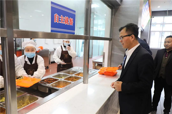 ??蒲斌副区长一行还深入飞越之家学生宿舍、空膳美食中心等生活区,综合了解学校办学规模,学生生源、飞行训练、飞行培训、专业理论学习、日常生活等方面的情况。中午,蒲斌副区长一行在学院空膳美食中心和师生一同就餐。