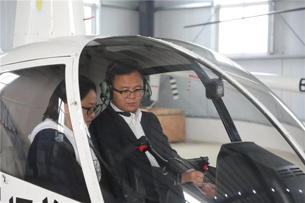 ??座谈会后,蒲斌副区长一行前往飞行基地参观,了解学生飞行训练及机场建设情况,并亲身体验了直升机飞行。