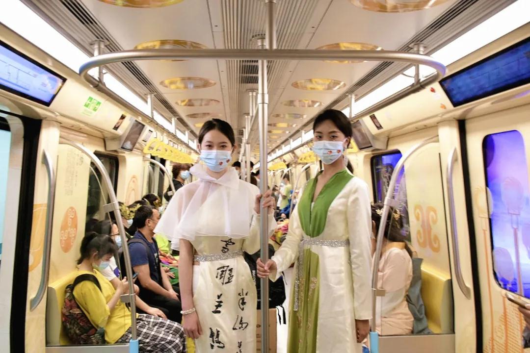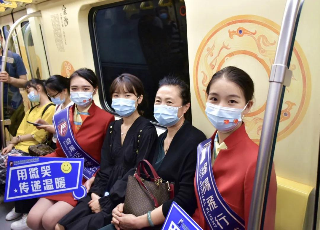 ????除了走秀,“准空姐”、“准机长”们还乘坐金沙文化主题地铁7号线,和地铁乘客亲密互动,传达“传递微笑传递爱”的活动主题,他们的行动受到众多现场游客的点赞,地铁车厢顿时变成了传递爱和温暖的欢乐舞台……