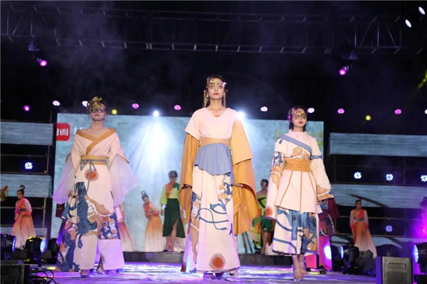 ????俏丽的佳人,动感又充满力量的音乐,霓裳羽衣的温婉悠扬,从遥远的东方古国款款而来。一场穿越而来的传统文化,在舞台上华美绽放!华美之服在灯光下耀眼夺目,流裙上飞舞的三星堆形象熠熠生辉。遒劲的舞姿,飞舞的裙袂,柔韧的身姿,坚毅的目光!三星堆古文明与现代文明,碰撞出新生活力,给观众带来一场传统文化的视觉盛宴。
