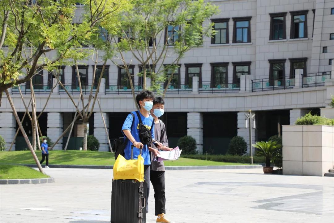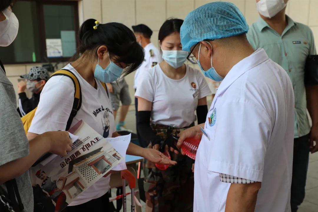 ????在校门口,安保、防疫工作组严阵以待,对报到新生进行行李消毒、身份确认、健康码、行程卡以及核酸检测报告查验、体温测量与登记等,做好细节,全方位落实防控要求,为新生及家长积极服务。