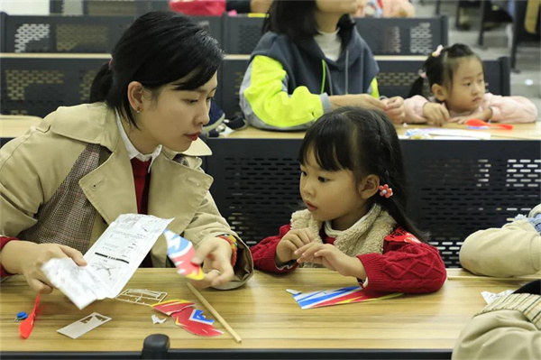 ????龙堡一楼阶梯教室,魏煜宸老师讲解飞行基本原理,分步骤组装航模。操作自己“制造”的小飞机飞向蓝天,孩子欢呼雀跃,别提有多开心了~~