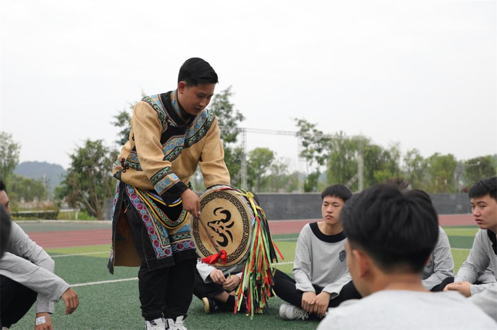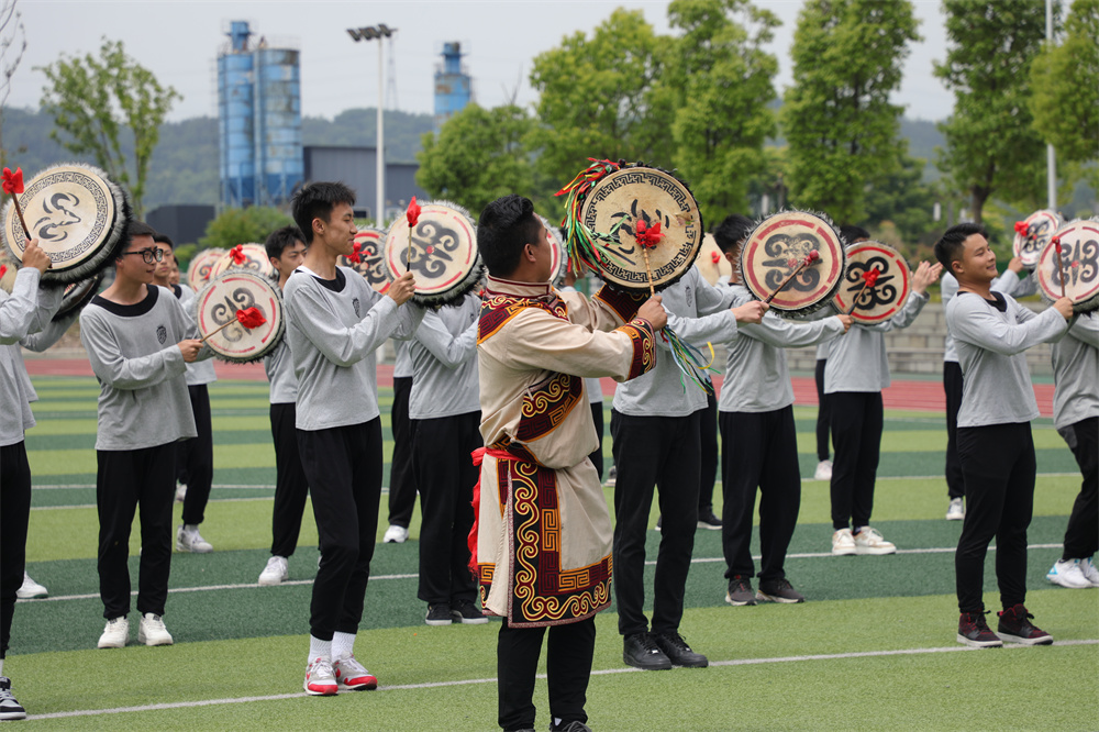非遗传承进校园,绵飞学子跳起悠久神秘的古羌羊皮鼓舞