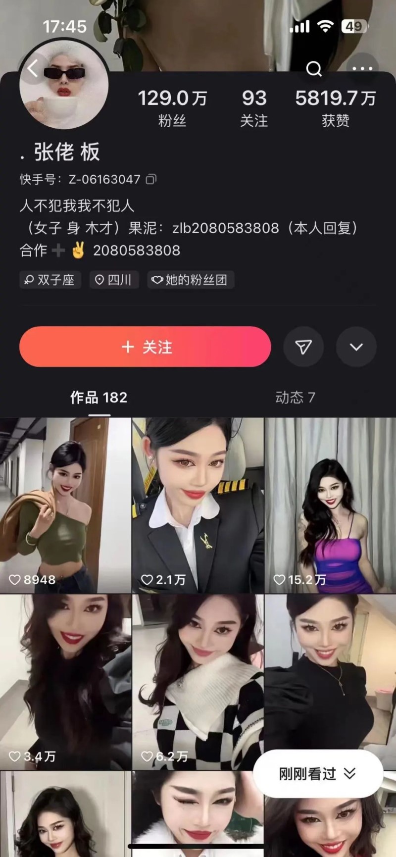????修长高挑的身材,乌黑的秀发,立体深邃的五官……毫无疑问,张茹梦同学自信又美丽,而在成为飞行学员之前,她还有一个更广为人知的称号——张佬板。目前为止,她在快手平台拥有129w粉丝量、抖音平台12w粉丝量。
