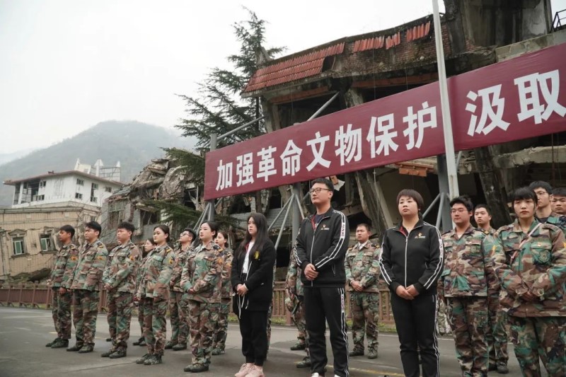 ????师生们亲身走过那片土地,听见他们诉说的故事。石块掩埋了整座学校,在教学楼中的师生无一生还,留下的只有那高高飘扬的红旗,他们的尸骨永远长眠于这片他们深爱的土地。在北川遇难同胞纪念碑与中央祭奠区,师生集体在碑前默哀三分钟,深切缅怀并悼念地震中遇难的人们。