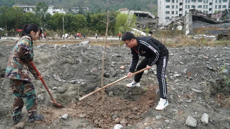 ????在这个春意盎然的季节里,在第45个植树节及5·12汶川特大地震十五周年即将到来之际,中共绵阳飞行职业学院支部、共青团绵阳飞行职业学院委员会、绵阳飞行职业学院思政部组织师生党员、入党积极分子及优秀团员,联合5.12汶川特大地震纪念馆,与曲山派出所、曲山卫生院、曲山镇政府、信用联社曲山分社、信用联社坝底分社及来自河南焦作、河南周口、贵州赤水等地的社会各界爱心朋友们,齐聚北川老县城地震遗址,开启“特别党日”活动——“我为北川老县城种棵树”公益植树。