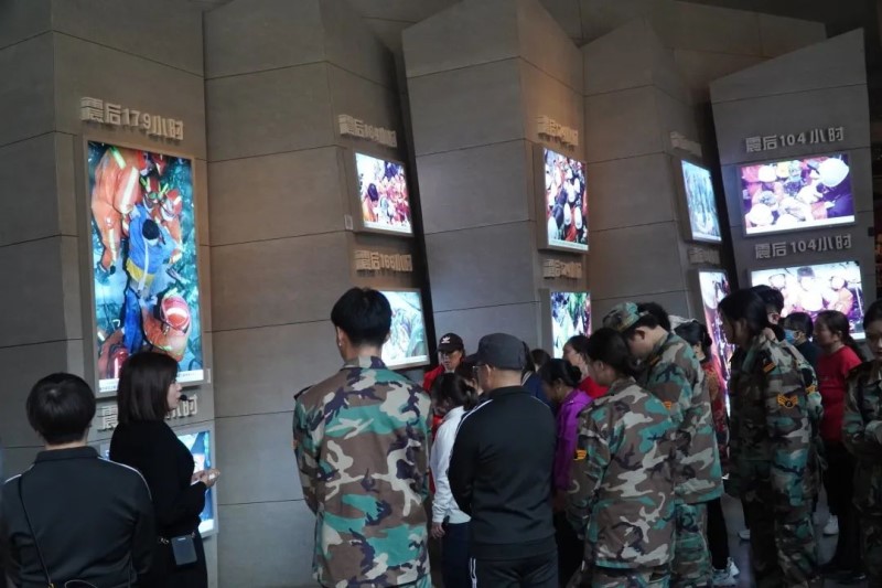 ????悲伤是什么?悲伤是残破不堪的汽车、是凑不齐一双的鞋、是碎片、是斜垮的建筑、是碎石、是破败,也是令人窒息的压迫感。在地震纪念馆,师生们跟随讲解员仿佛重新经历了地震,看到北川在党和国家的带领下如何涅槃重生。