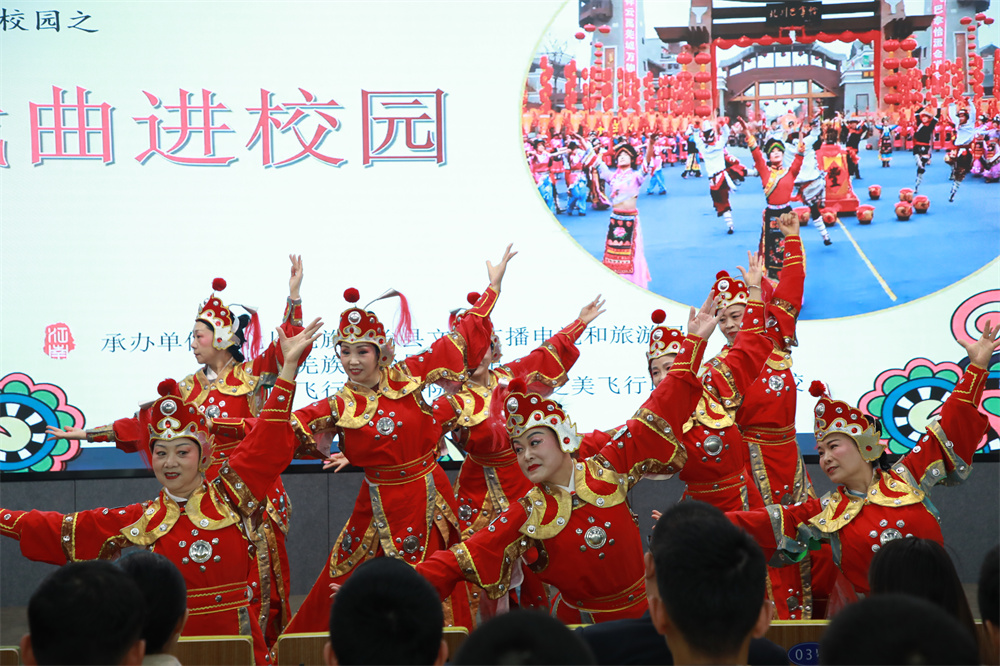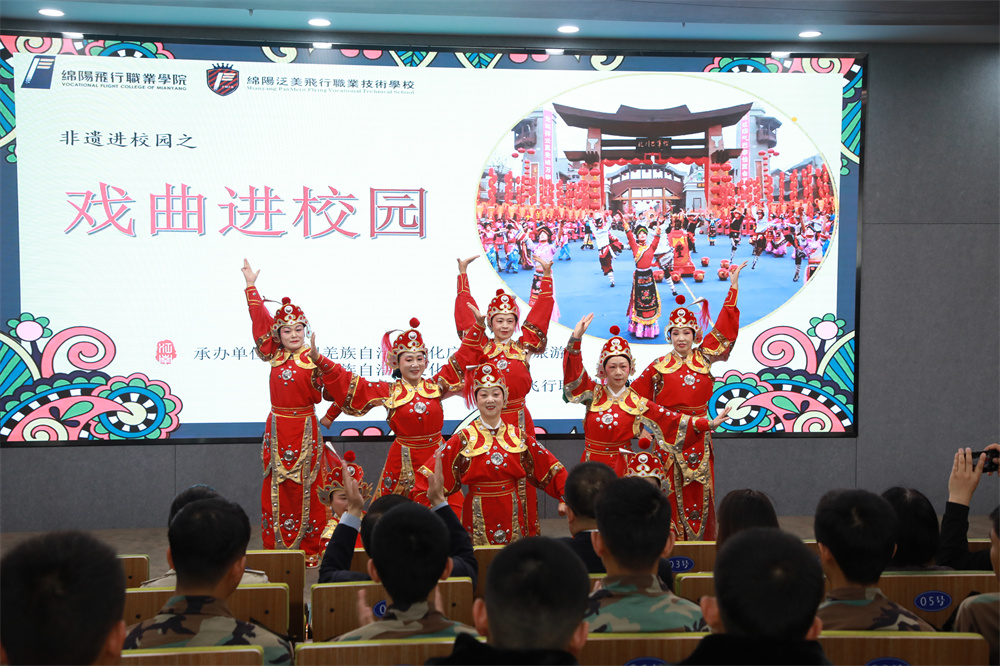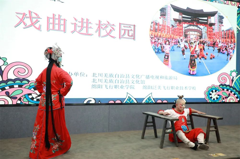 ????为弘扬中华优秀戏曲文化,传播传统文化的韵味和魅力,4月25日,由北川羌族自治县文化广播电视和旅游局、北川羌族自治县文化馆主办的2023年非遗文化传承之“戏曲进校园”走进了绵飞校区,为绵飞师生带来了一场精彩绝伦又内涵丰富的戏曲盛宴。