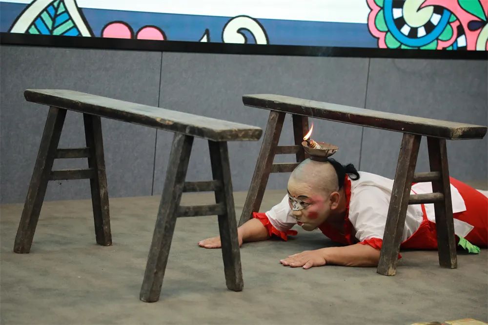 ????川剧演员们为师生带来了开场舞《巾帼英姿》、折子戏《劝孝》、《滚灯》、快板。