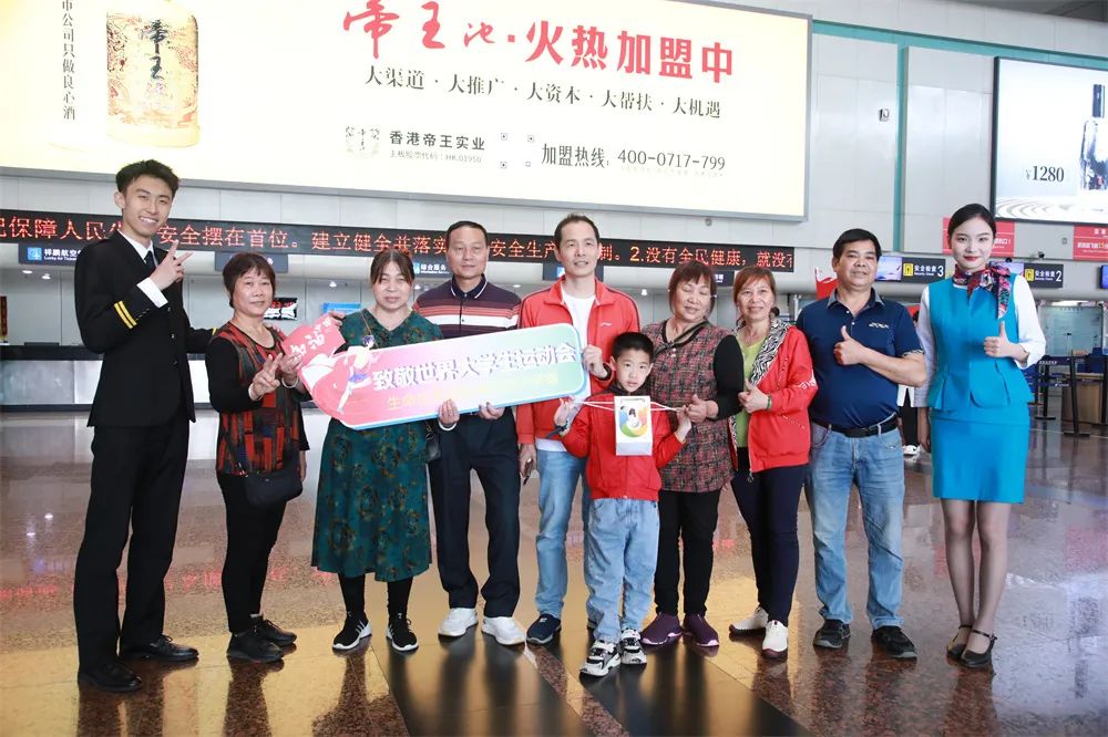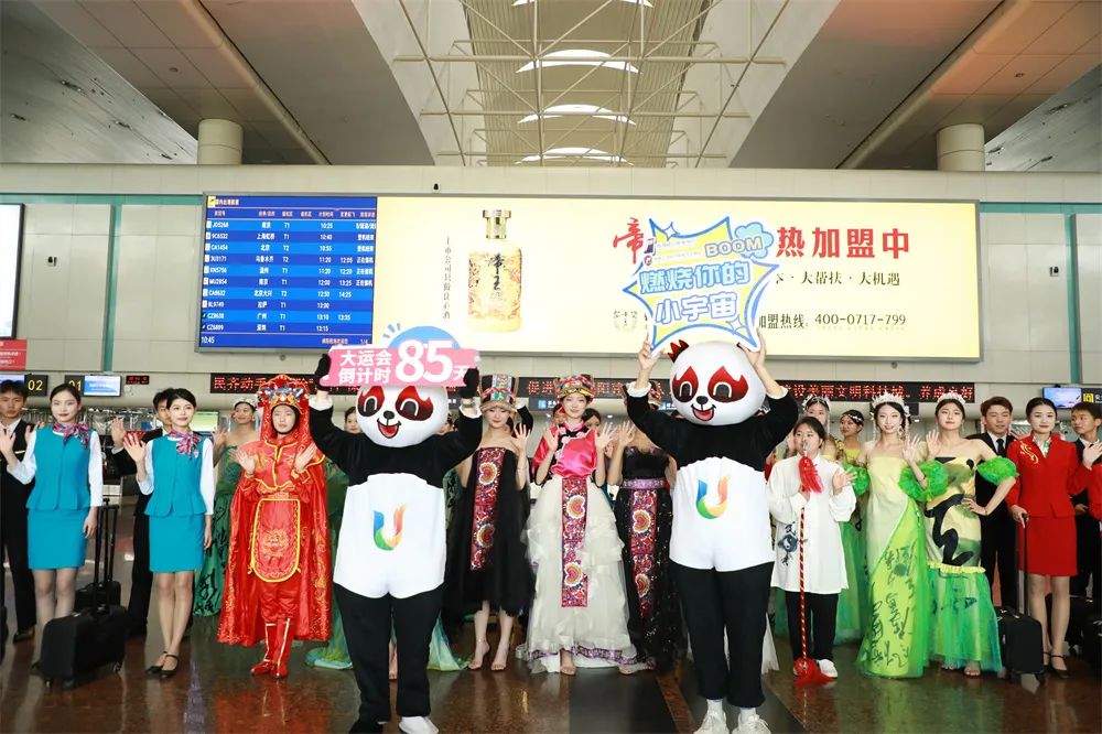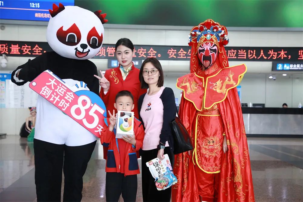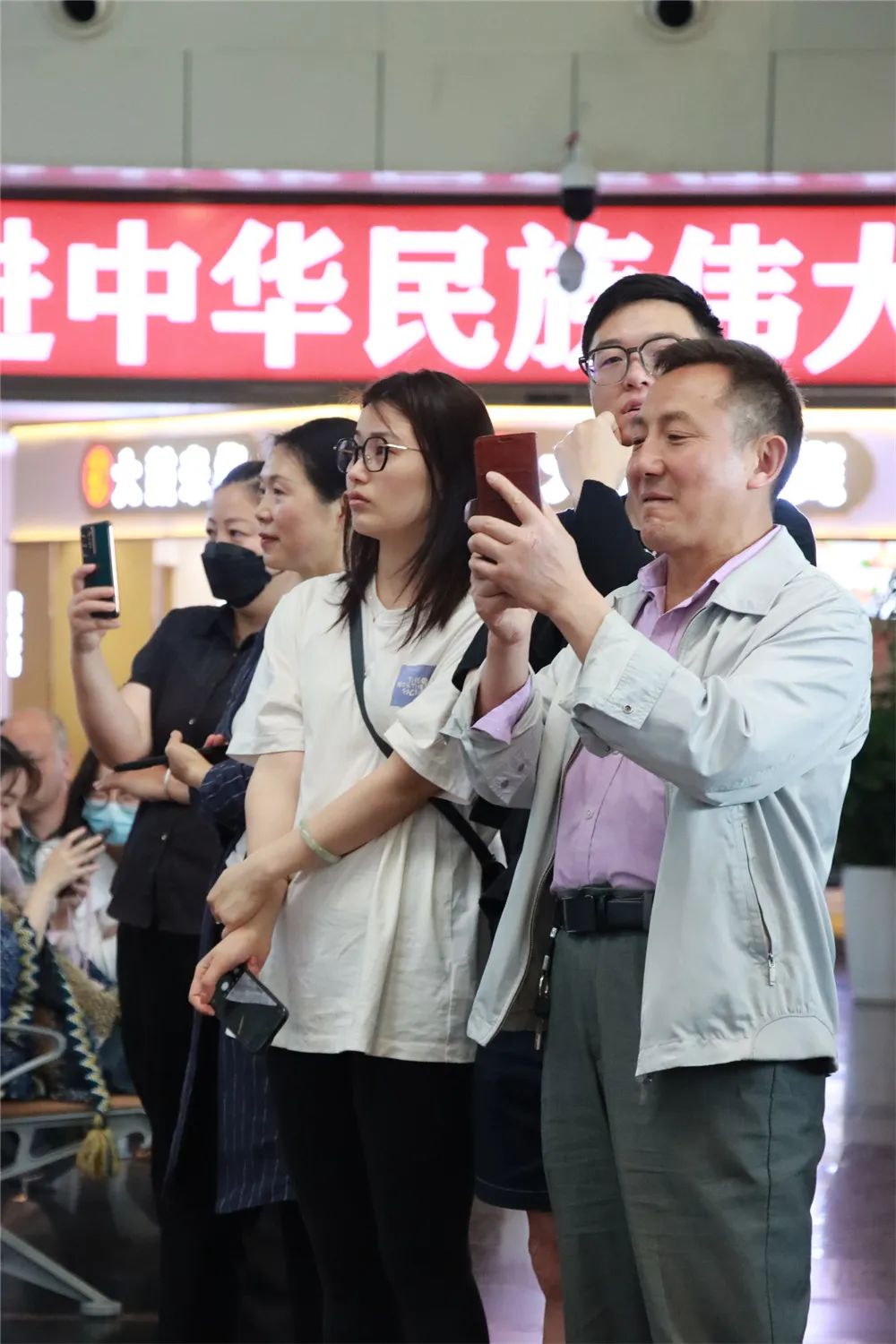 ????羌风羌韵与现代礼服相结合,中国风潮流和绚丽的制服走秀,混搭时尚,吸引了众多的旅客驻足观看,细细品味TA们的风采。“这些学生靓丽帅气,充满青春活力”、“看到他们让我非常期待大运会”……虽然只有短短几分钟的快闪,却赢得了现场旅客的点赞。不少旅客主动和同学们互动、合影。