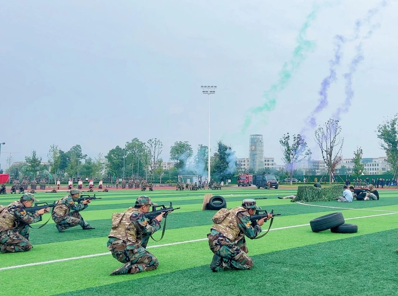????热血青春,当以戎装启程,为检验职场启梦军事训练成果,展示学生军事素质、技能和职业风采,9月28日上午,绵阳飞行职业学院、绵阳泛美飞行职业技术学校2023新生职场启梦训练汇报表演隆重举行!