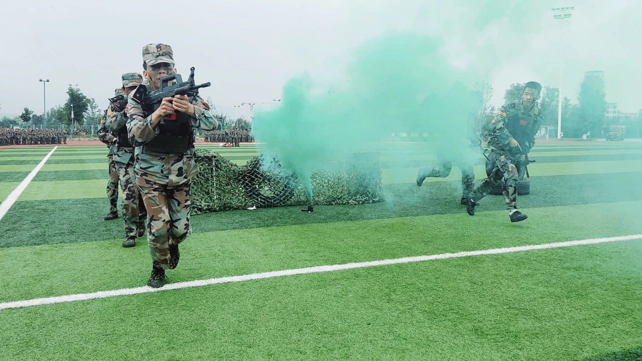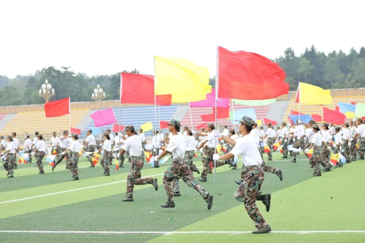 ????汇报表演开始前,首先进行了升旗仪式、新生们集体诵读军规二十二条。随后,各方队依次经过主席台,以崭新的风貌接受检阅,展现训练成果。
