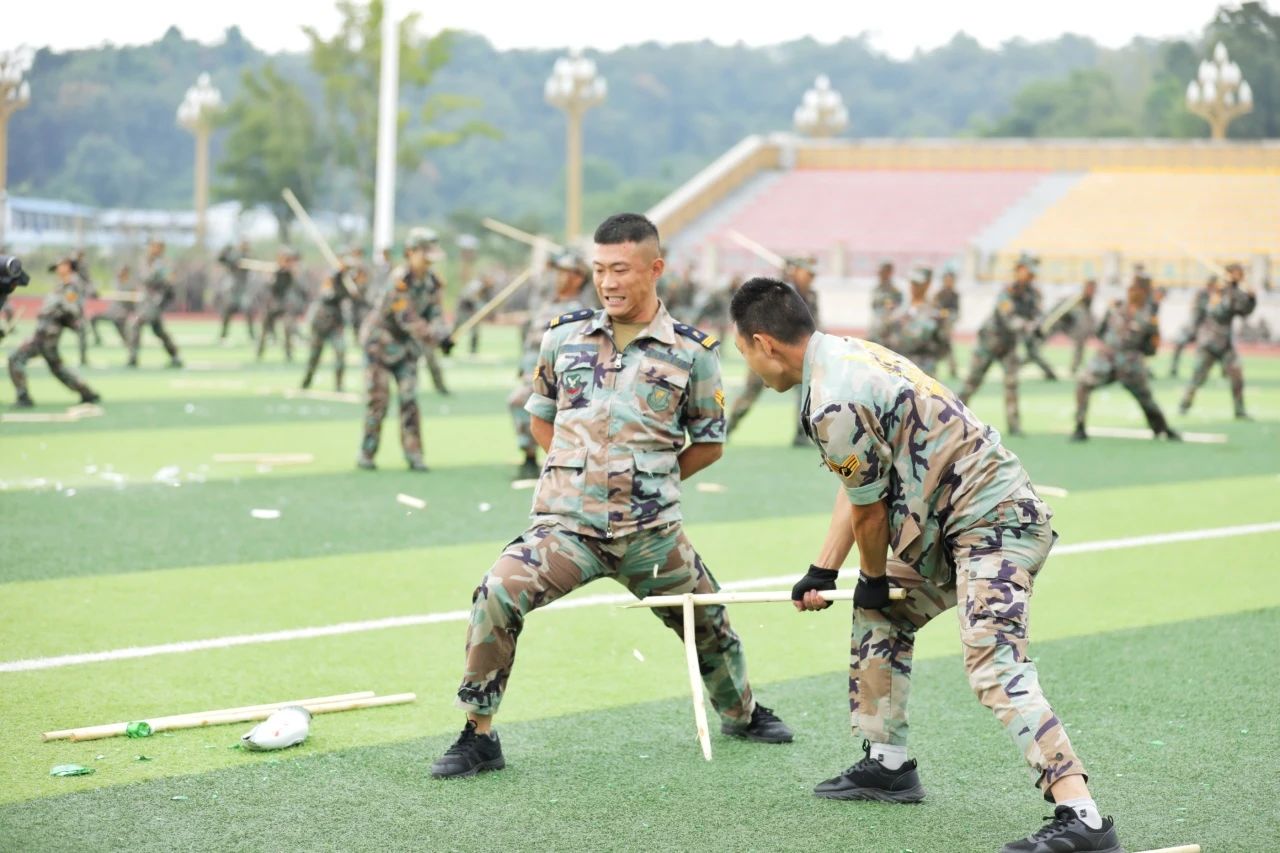????“格斗准备!”抬肘、勾拳、踢腿、格挡……他们军姿矫健、拳拳沉稳有力,气势磅礴,震撼人心。