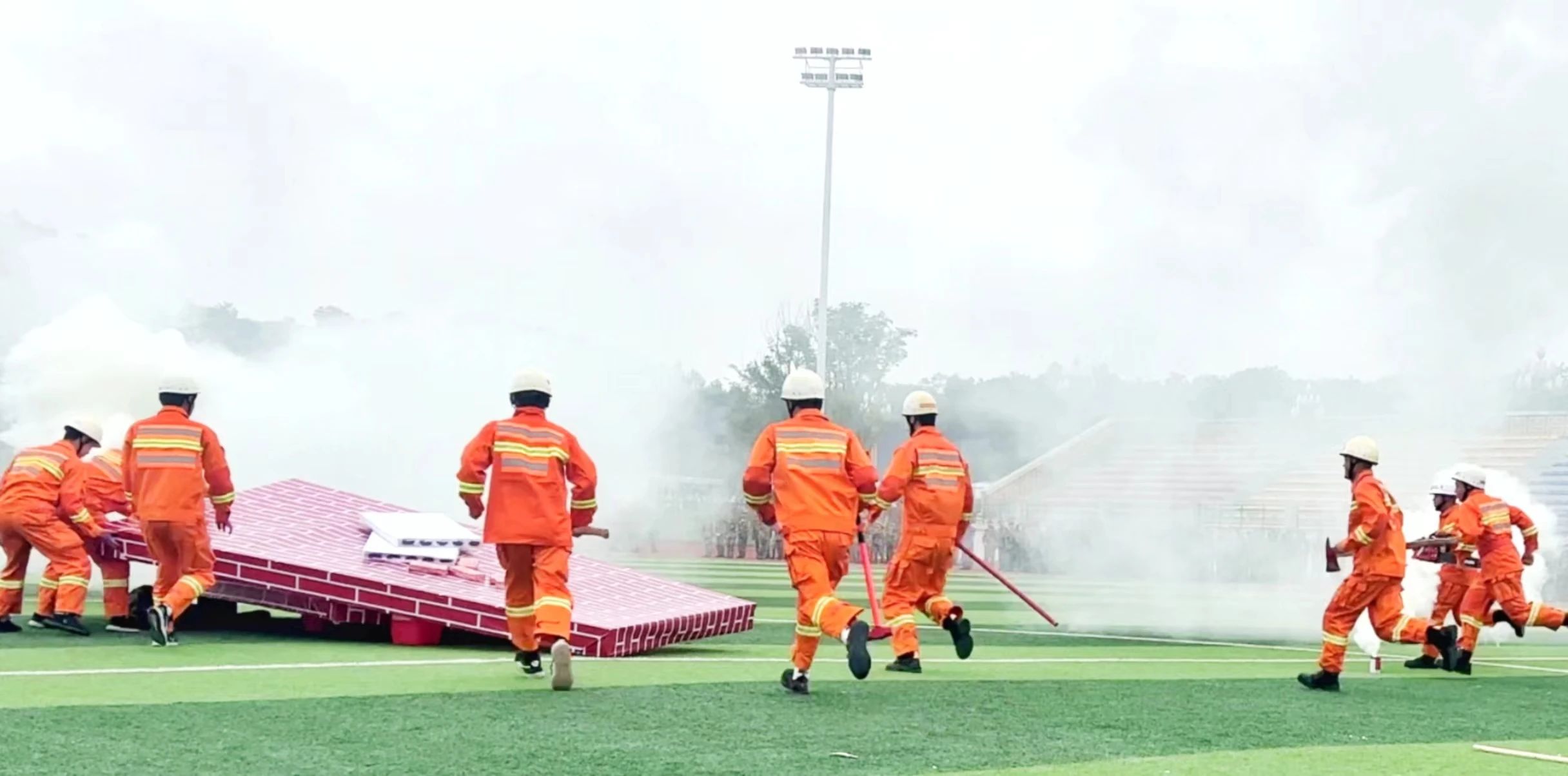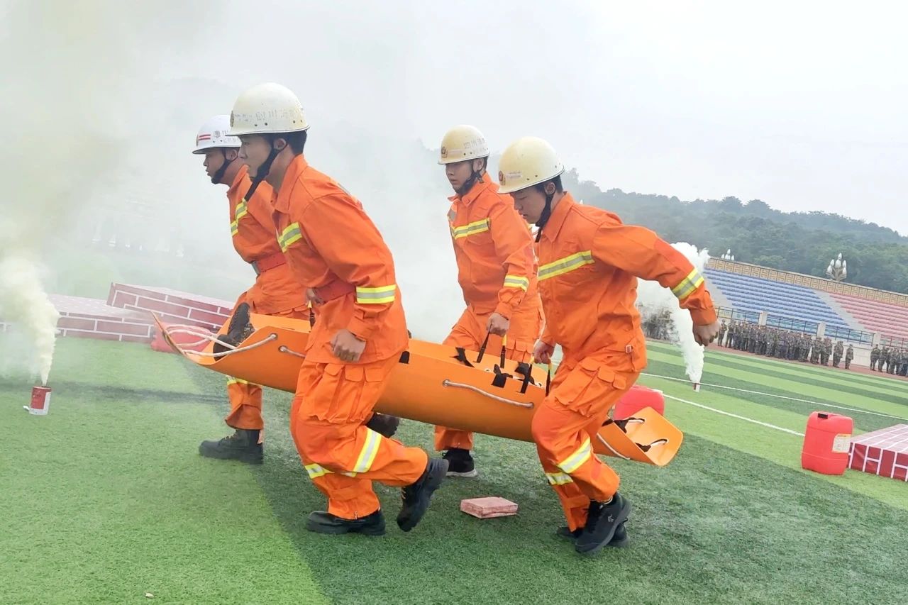????“一身是胆擒炎帝,众志成城斗祝融”,队列会操、一人二带操法、实景消防演练……一项项训练项目轮番上场,既有淬火成钢的无畏,更显绵飞学子的风采和勃勃生机。