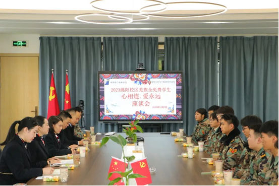 在自由交流环节,32名羌免生依次进行个人交流发言,分享自己在绵飞的学习生活。部分羌免生在交流发言中表示,尽管在学业学习方面遇到过困难,但院校老师都特别关心同学们的学习情况,提出了很多切实可行的解决办法。杨超同学作为羌免生代表对学院给予的各类支持与补助表示感谢,“升入大专后,我也有了更多时间做自己喜欢的事情,感谢学院给予的机会与广阔平台,我学习到了很多?!彼?。