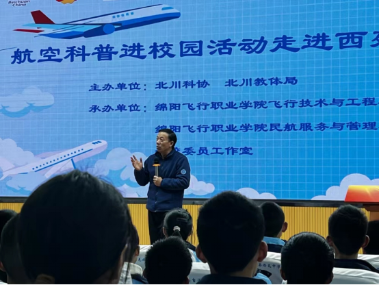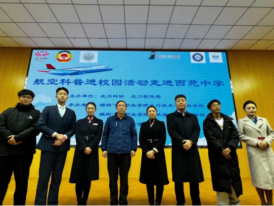 近年来,乡村振兴战略的实施以及民族团结的建设成为了我国社会发展的重要议题。为了推动航空职业教育的普及和加强对乡村地区的支持,2023年12月,绵阳飞行职业学院飞行技术与工程学院、民航服务与管理学院、贺佼委员工作室院联合北川羌族自治县教体局、北川羌族自治县科学技术协会联合开展航空科普进校园活动走进西苑中学。旨在向学生们普及航空知识,增加他们对航空职业的了解和兴趣,激发学生的科学探索精神。
