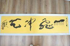 在禹风诗联学会张强、李加碧现场创作书画间隙,与会嘉宾、各县市区诗词、文化学会向绵阳飞行职业学院赠送书籍及书法、美术作品,绵阳飞行职业学院副院长李选华、梁国辉向参加活动的各位嘉宾赠送学院文创产品。