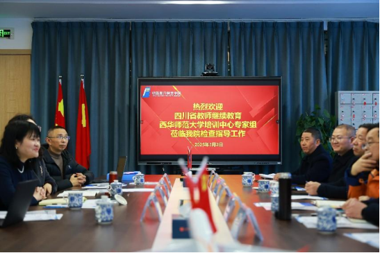 2025年3月3日下午,西华师范大学高等职业技术师范学院党委书记陈玲、西华师范大学党委研究生工作部部长万琳、四川建筑职业技术学院副校长许辉熙教授和师培中心王竞武老师组莅临绵阳飞行职业学院,对2024年度四川省高等学校新入职教师职业技能(岗前)培训项目的“线上学习”和“返岗教研”阶段进行了全面视导。此次视导工作旨在进一步推动新入职教师的专业成长,提升其教学技能和教研能力,确保培训项目的实效性。