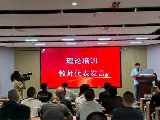 飞行技术学院 - 机电工程学院副院长郑保民代表理论教师讲话。郑院长指出本次培训目标清晰且意义重大。旨在通过系统全面的理论学习与扎实有效的实践操作,助力学员掌握无人机驾驶员(初级)所需的专业知识与技能。让学员不仅具备独立完成无人机飞行任务的能力,还能熟练进行基础维护,严格达到国家职业技能标准要求。