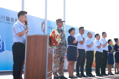 绵阳飞行职业学院执行院长梁国辉代表学院全体师生对2025级新生表示热烈欢迎,并发表讲话。他强调,学院始终秉持培养高素质技术技能人才的使命,将“标准化、军事化、专业化”理念融入育人全过程。而即将启动的“职场启梦训练”是新同学的职业入门课,也是连接校园与职场的重要纽带。