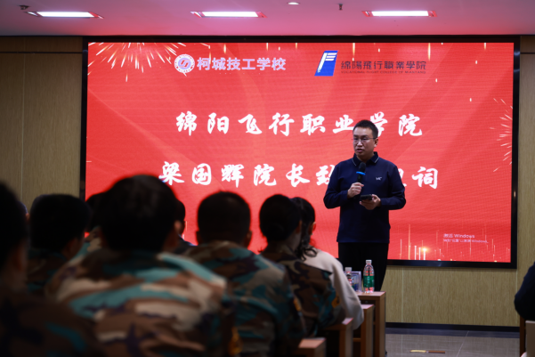 绵阳飞行职业学院执行院长梁国辉在致辞中表示,学校深耕职业教育领域,聚焦消防应急、低空经济等新兴产业,构建优势专业集群,创新人才培养模式,已建成多领域高标准实训基地。此次与柯城技工学校携手,既是响应国家东西部协作战略的具体行动,更是两地职业教育资源互补、协同发展的生动实践。
