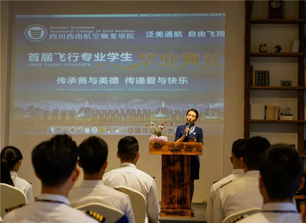 四川西南航空职业学院副院长刘萍也对同学们表达了美好的祝愿和希望,她提出希望同学们在未来能够积极应对改变,努力创造改变,珍惜身边的所有人以及所自己拥有的一切,做一个有思想,谦虚勤奋的逐梦人。?