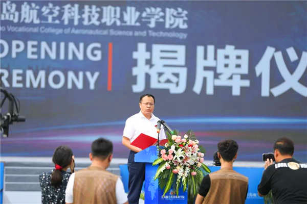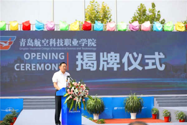 ???青岛市委教育工委委员,市教育局党组成员、总督学李岷在讲话中表示,青岛航空科技职业学院的揭牌,在青岛高等教育史上写了崭新的一笔。他也祝愿青岛航空科技职业学院能够把握时代大势,坚定发展信心,积极融入部省共建职教高地的大潮中,积极融入全市十五个攻势、建设现代化国际大都市的大潮中,在新时代谱写我市高等教育新的篇章,为实现中华民族伟大复兴的中国梦作出新的更大贡献。