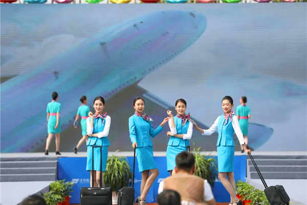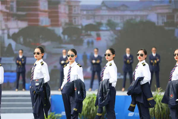 ????在揭牌仪式现场,青岛北方航空职业学校的学子们带来精彩的航空专业特色节目表演,爵士舞《FLY嗨!》、校园学生服饰展示《多彩青航》、创意说唱《乐享·云端》、航空手语操《爱在蓝天》、飞行T台秀《壮志凌云》。现场其乐融融,赞叹声不绝于耳。