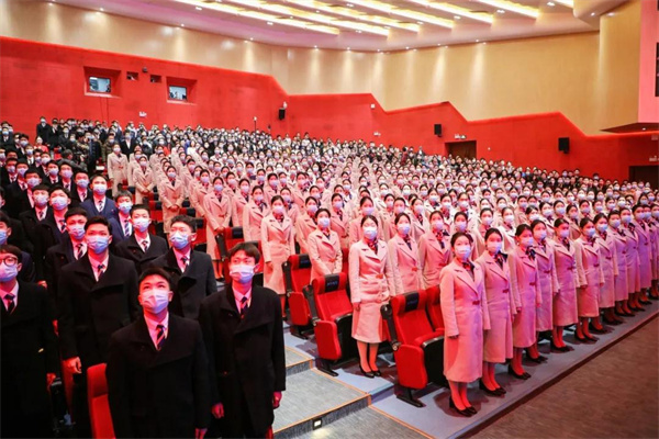 ????开幕式伊始,随着响亮的国歌奏响现场,所有与会嘉宾及师生起身站立,静默目视,庄严肃穆。满堂高亢有力的节奏之音,点燃了决赛启动仪式前的沸腾热血。