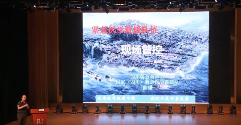 国家(四川)紧急医学救援队队长陈康进行理论授课