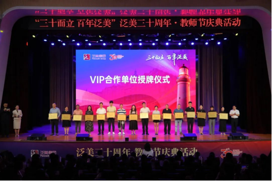 ????三十年风雨同舟谱华章,新时代携手前行续辉煌。回顾三秩春秋,泛美的每一步成长,离不开泛美人的奋楫争先,离不开众多合作伙伴的鼎力支持。在庆典现场,举行了媒体联盟、vip合作单位授牌仪式,并为在泛美发展历程中做出卓越贡献的功勋人物、卓越团队和优秀家人进行了现场表彰。