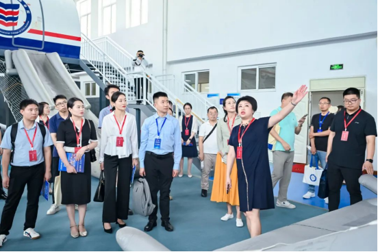 ????在参观过程中,学院副院长张雪梅、刘元超作为培训班成员为各位嘉宾重点讲解了学院民航相关专业实训中心。通过实地参观,嘉宾对集团化办学模式、校企融合发展、一流实训设备等予以肯定。