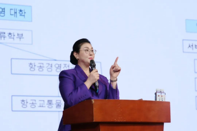 ????随后,韩国航空大学国际交流学部服务经营专业主任教授李秀卿结合自身经历和教育经验,为泛美学子带来《翱翔云端?智启未来——韩国航空大学教授视角下的航空产业与人才培养》主题讲座,系统解析全球民航产业发展趋势,强调国际化民航人才需具备的重要能力。此外,还重点介绍了韩国航空大学在航空人才培养方面的创新模式与实践成果,展示了这所知名航空学府的独特魅力。