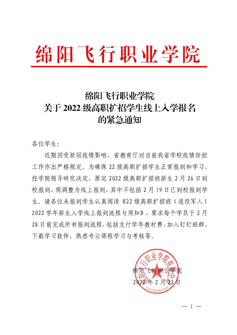1.请在附件查询《绵阳飞行职业学院2022级高职扩招专业分班名单》(见附件),找到自己班级名称。