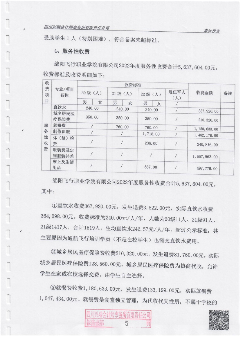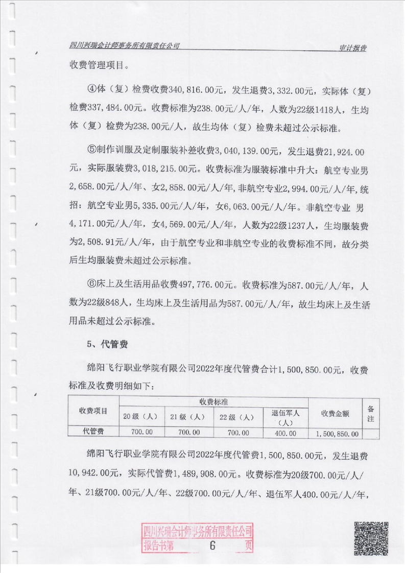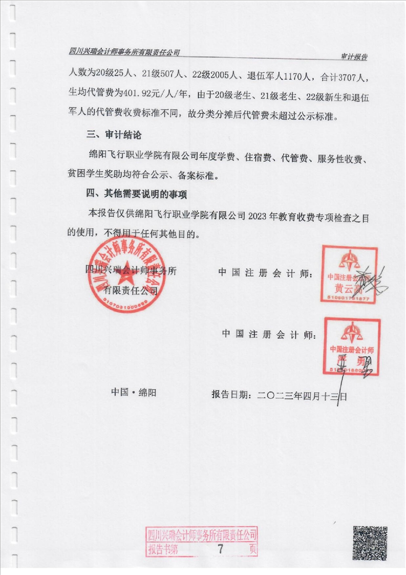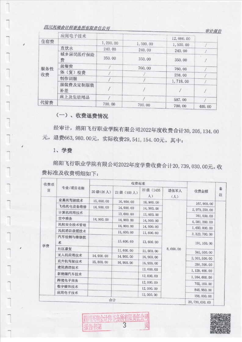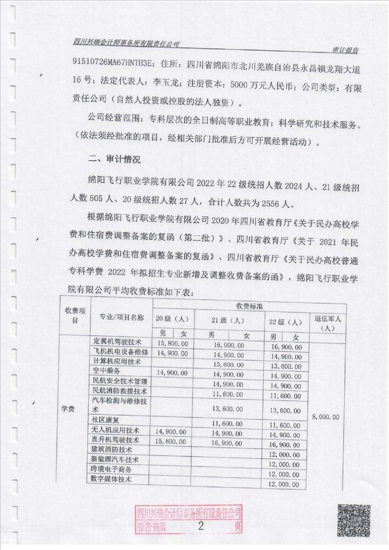 绵阳飞行职业学院2023年新增专业收费标准公示