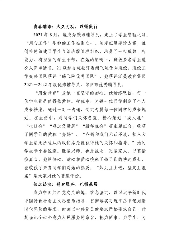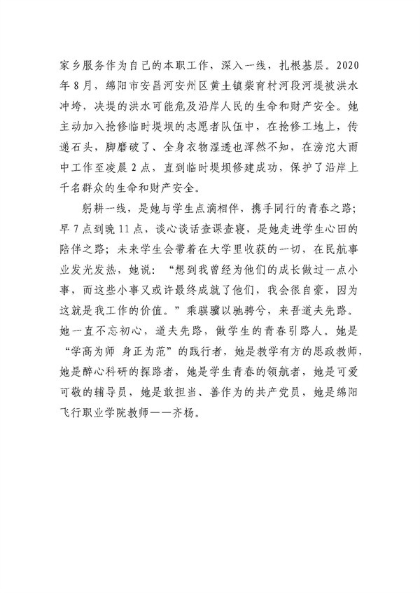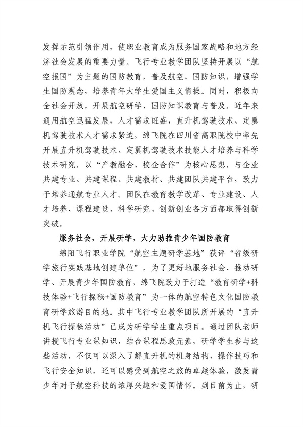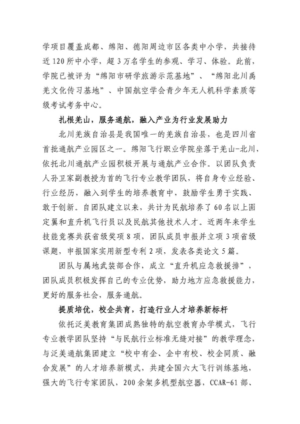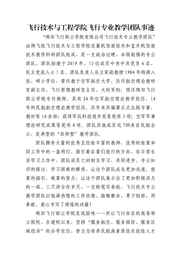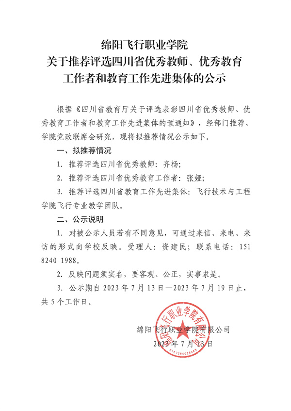 绵阳飞行职业学院关于推荐四川省优秀教师、优秀教育工作者和教育先进集体的公示