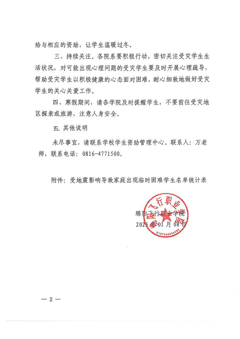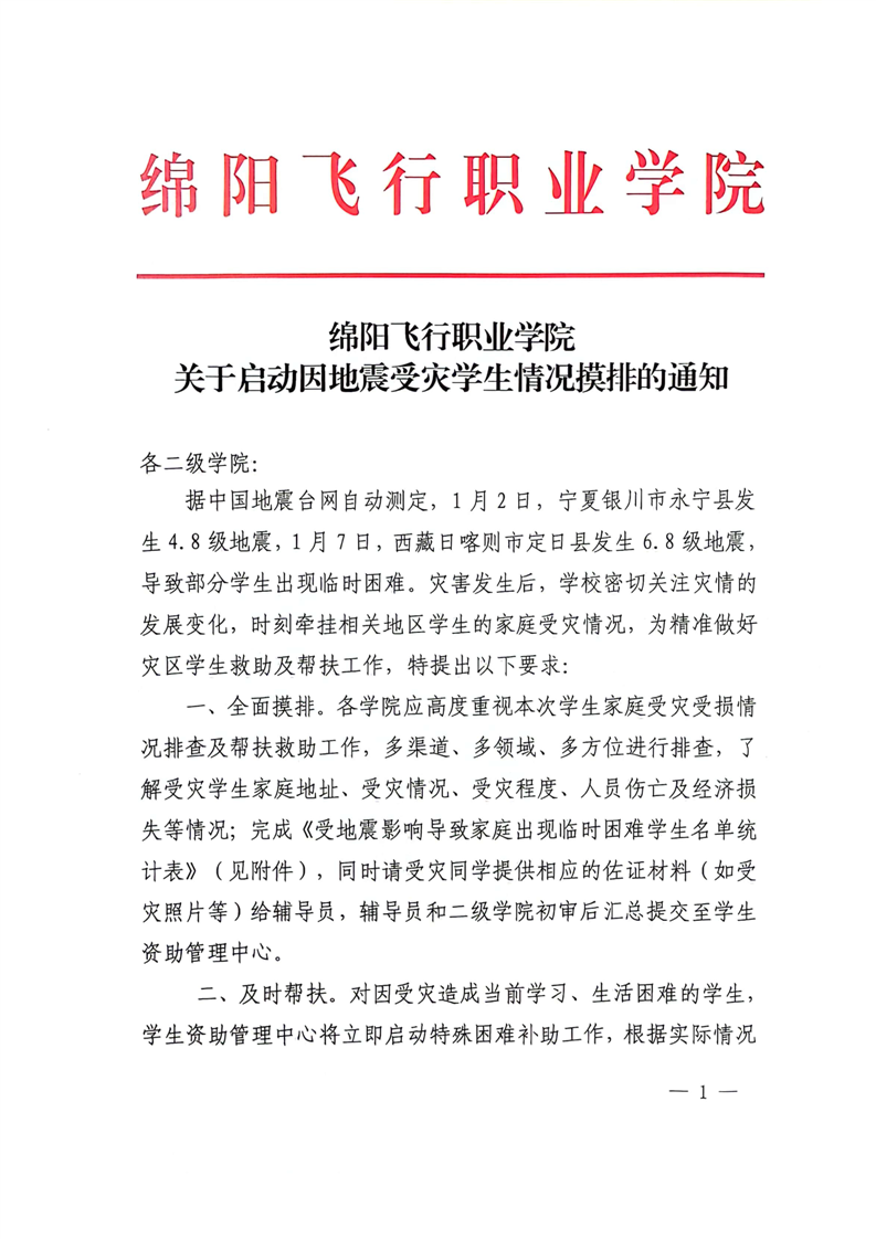 绵阳飞行职业学院关于启动因地震受灾学生情况摸排的通知