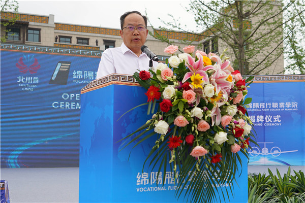 民革中央副主席、全国政协常委、全国妇联常务委员会委员钮小明,四川省政府教育督导委员会专职副主任、四川省教育厅总督学傅明,绵阳市人民政府副市长蒋丽英,四川省高校设置评议委员会评审专家组组长、西南交通大学原常务副校长蒋葛夫,北川羌族自治县委书记赖俊,北川羌族自治县委副书记、县人民政府县长瞿永安、中国民用航空飞行学院副校长欧阳霆等领导,以及四川省高校设置评议委员会评审专家组、绵阳市委市政府、北川羌族自治县委县政府、各类航空企业、四川省内部分高校和中职学校专家和领导出席了揭牌仪式,共同见证这一历史时刻。
