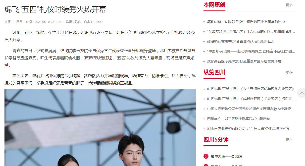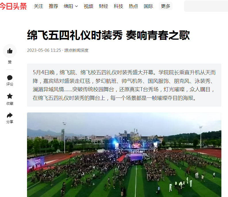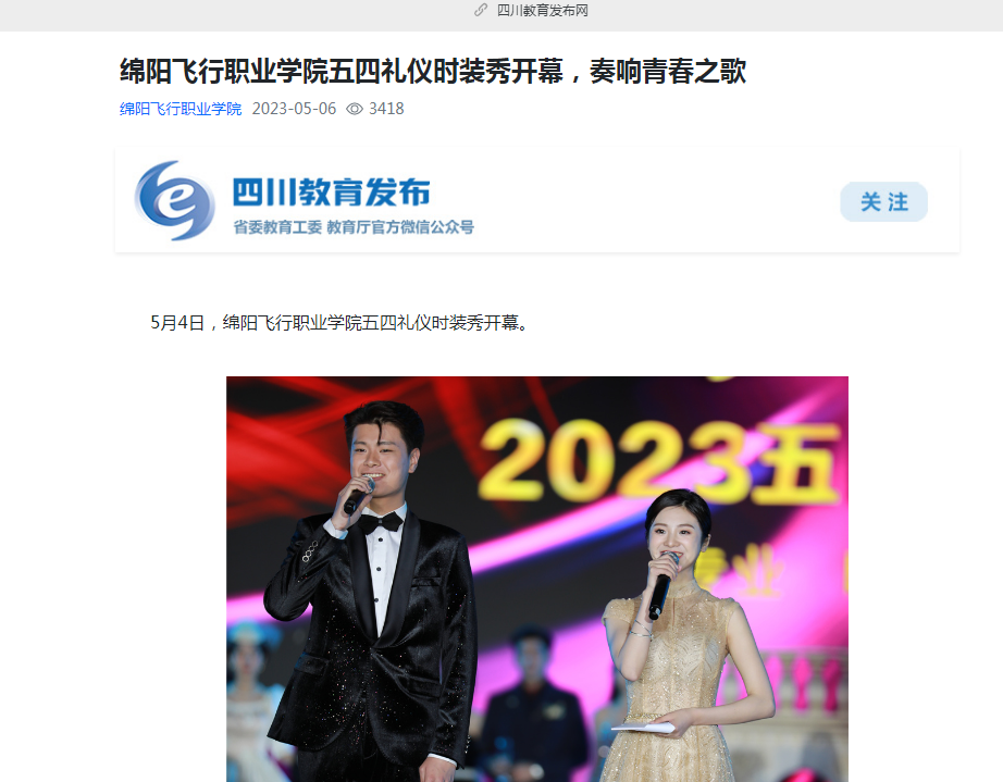 媒体聚焦:为热爱加冕,让莘莘学子尽展芳华,绵飞五四礼仪时装秀盛大开幕