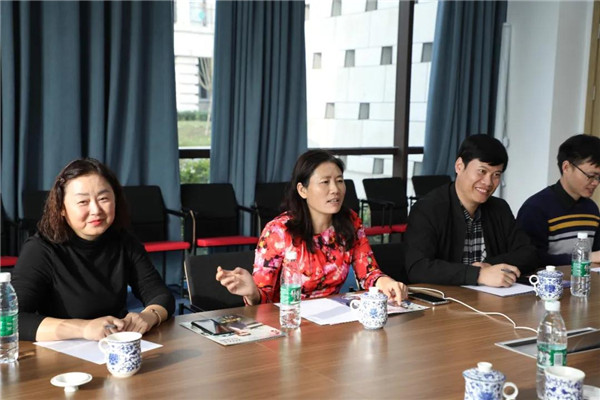????参观完毕,双方在行政大楼会议室进行了座谈交流。何元灵副院长介绍了泛美教育集团“一体两翼”发展战略布局,以及学院在培养模式、专业设施、校企合作、师资团队等方面所取得的进展和成果。